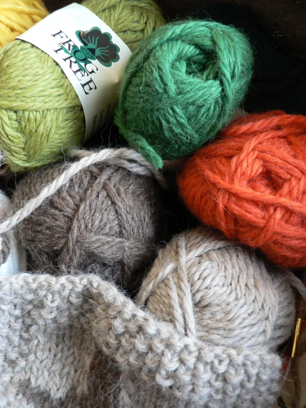 I received a generous box of Frog Tree Chunky, which Lynn is going to knit into the Family Tree Throw. Super nice!