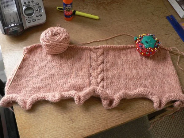 Here is what I have so far done on the cardigan for the Mothers Chapter. It's the softest yarn, too. The Fibre Company's Babe. This is going to be "Hannah's Sweater", I can't wait to wear it!