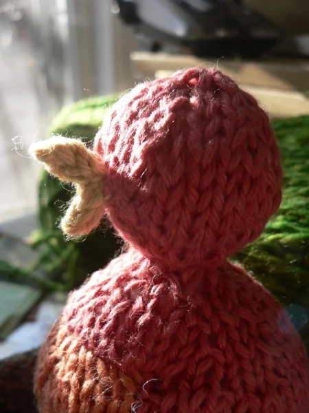 Here is the bird who will sit atop the wee nest. His body needs some help, but I'm happy with his little head.