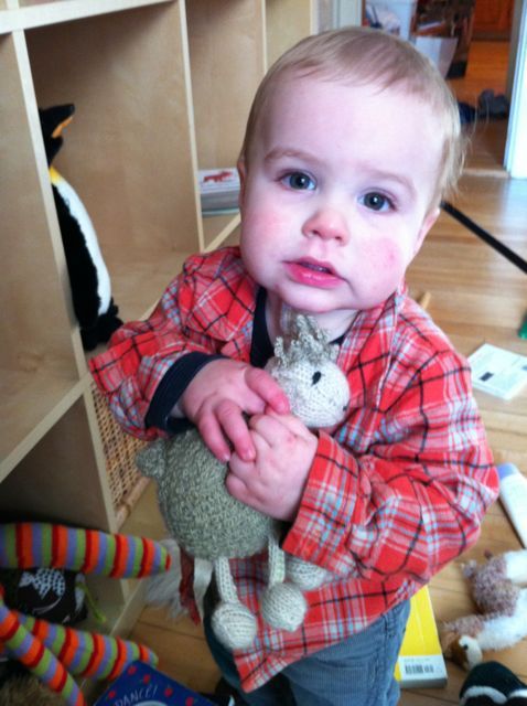 Susan has a pattern for a lamb in Itty Bitty Toys which I knit for Jonah. He loves him!