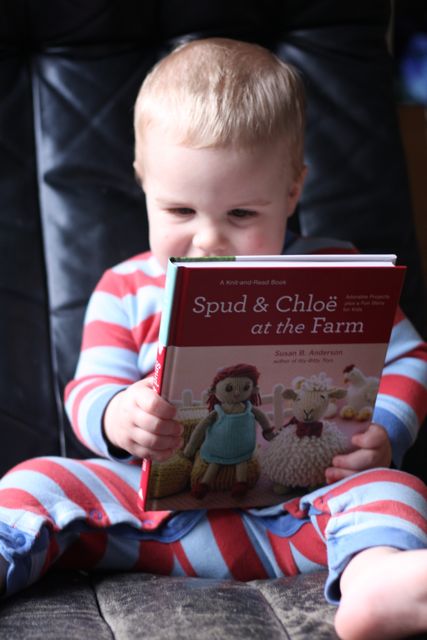 Susan's books appeal to children with their bright photographs of fun knitted toys and babies and children wearing adorable knitwear. At the Farm takes it one step further - there's a 9 page Spud and Chloe cartoon at the end of the book!
