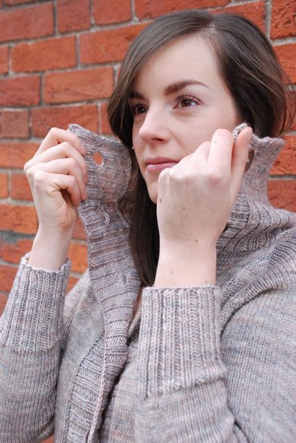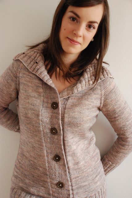 This may look familiar. It is in fact the Gooseberry Cardigan from Weekend Knits of 2009. I've made a few modifications and now making it available for purchase as the Calligraphy Cardigan, named after the beautiful shade of tosh dk that the sample is knit in.