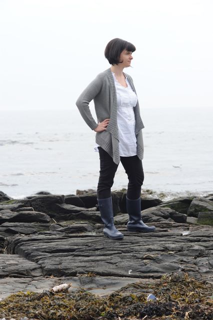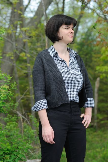 Featherweight Cardigan in Obsidian.