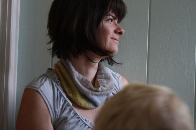 I was home alone all day yesterday, but really wanted to get my Tricolor Cowl pattern up on Ravelry! Taking photos with the self timer on my camera proved to be a challenge, thanks to one little friend.