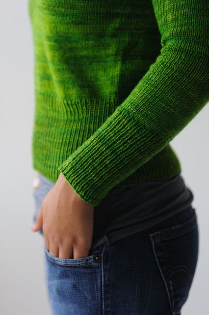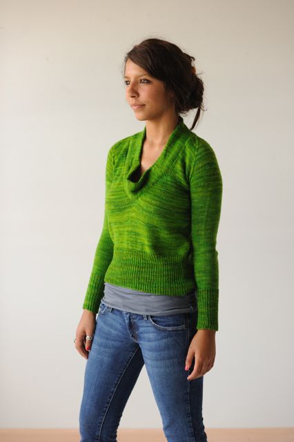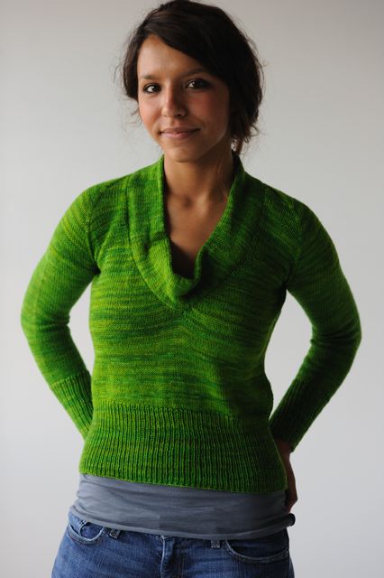 This was originally published as the Lettuce Pullover as part of my 2009 Knitscene collection. Some small adjustments have been made, including gauge, and it is available in more sizes.