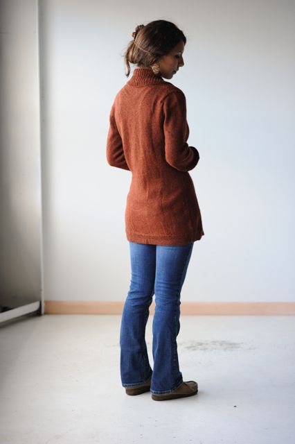 finished measurements Bust: 34 (38, 42, 46, 50, 54, 58, 62)” Length: 27.5 (28.5, 29.5, 30.5, 31.5, 32.5, 33.5, 34.5)” Shown with 2–4” positive ease.