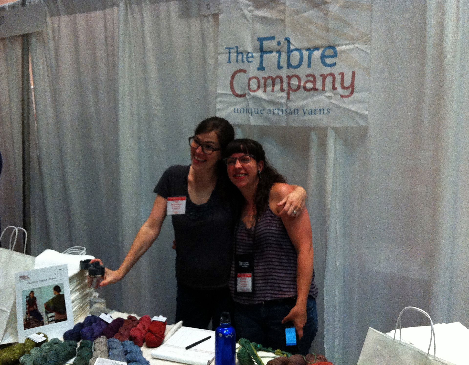 Hi, it's Deirdre again! Back from TNNA, and struggling to write a wrap-up post. How do you distill four awesome days into one blog post? I have started and stopped this post several times because I just can't find the words to convey how AMAZING, FUN, and all-around FABULOUS it was to be at TNNA this year! First off, I got to meet and share a booth with Courtney Kelley and Kate Gagnon Osborn, who run Kelbourne Woolens and distribute The Fibre Company yarns (swoon!). Both of them are just as wonderful as you can imagine, and I really enjoyed spending four days with them. Throughout the trade show, people kept stopping by the booth just to squoosh the lovely yarns, and I don't blame them! There may have been a good amount of squooshing done by me, as well.