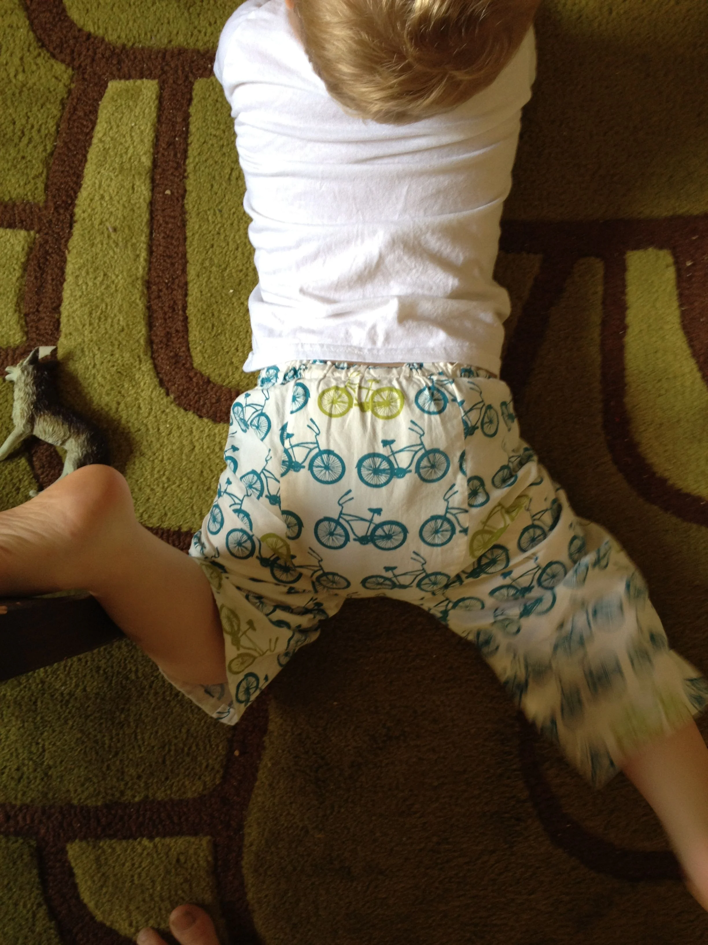 These pants are specially designed with cloth diaper wearing babies and toddlers in mind. The fit is perfect! I made 3 pair for my son in one evening.