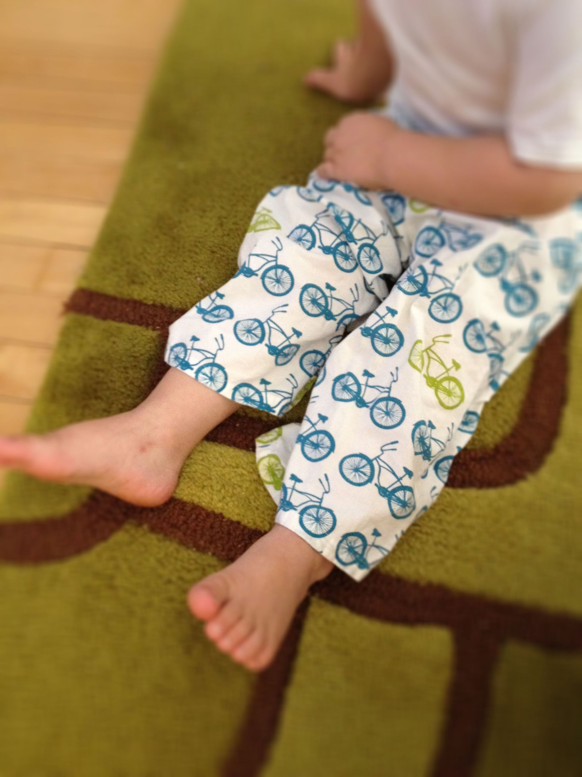 Before our baby arrived, I went on a fabric shopping spree and got to work on a few things for baby, toddler and home. First up, Big Butt Baby Pants by made by RAE. I was introduced to her sewing patterns by Kate who had sewn a few of Rae's patterns for her daughter. They are awesome for us super spontaneous types, the patterns are an instant PDF download. They are simple to work, very clearly explained, and a great fit.
