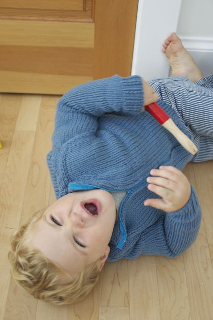 My Zip Up Cardigan pattern has always included children's sizes, though the adult version has been the cover shot so knitters might not realize it. I've been working on so many things for Mabel, I've wanted to include Jonah somehow. But I'm so limited on time these days! So I had Deirde's brother Peter knit me the smallest size of Zip Up. And now that it's here, well I'm not sure how excited Jonah is. Bribery was necessary to get him to put the sweater on so I could at least grab a few photos!