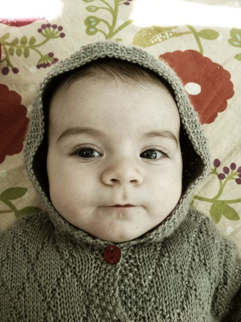 Baby's love nice yarn, right? September 18, 2012 hannah Mabel is now sporting the Jasper Diamond Hoodie I knit for her older brother. Yay for twice worn knits!