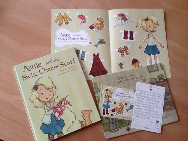 Have you heard the word? My friends Alana Dakos and Neesha Husdon are rock stars. Look at what they've done -- they've self published a children's book about a little girl who's learning to knit, Annie and the Swiss Cheese Scarf!