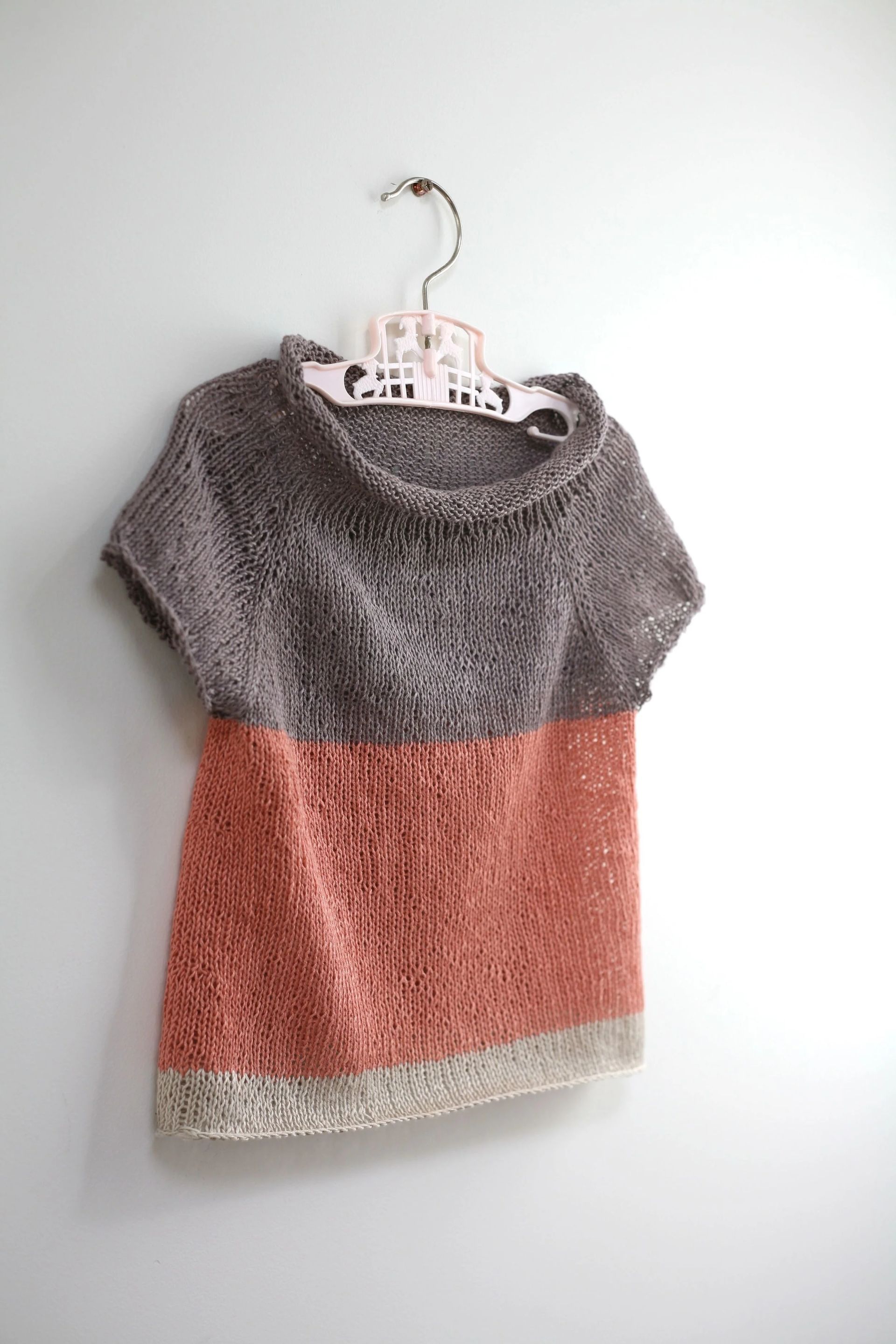 So many, many little Sock Yarn Sweaters have been knit over the past few years for babes and kids by talented and creative knitters. Last summer I knit a little girlified version for Mabel, and I thought it turned out so sweet I knit another one for this summer in linen. And today I'm happy to release my modifications for this girly version of the Sock Yarn Sweater!