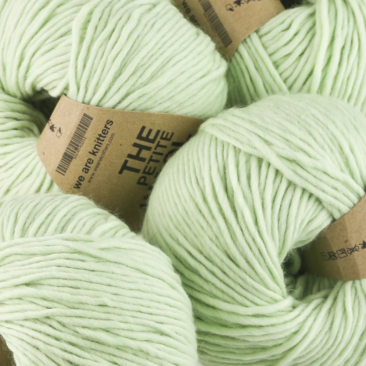 Five 100g skeins of We Are Knitters The Petite Wool in this most perfect color for spring: mint! Hannah is knitting herself a Lesley pullover in this yarn and color, check IG to see her progress throughout the month.