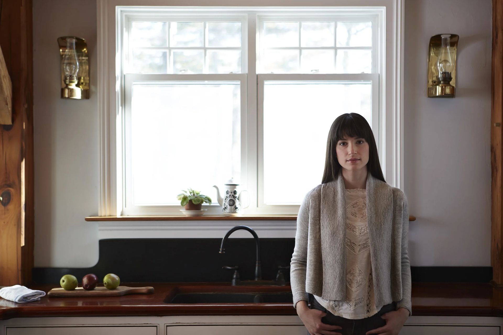The pictured sweater was knitted seamless from the top down. If you prefer seamed knits, a second set of instructions is included to knit the cardigan in pieces. This will yield the same result. For more on why you might choose one construction method over the other, see page 40 of Home & Away!